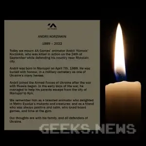 «Сьогодні ми сумуємо за мультиплікатором 4A Games Андрієм «Нізроком» Корзінкіним, який загинув у бою 24 вересня, захищаючи свою країну під Миколаєвом», – повідомили у 4A. «Андрій народився в Маріуполі 7 квітня 1989 року. Похований з честю, на військовому кладовищі, як один із багатьох героїв України.