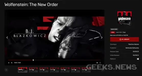 Отримайте Wolfenstein: The New Order безкоштовно в Epic Game Store