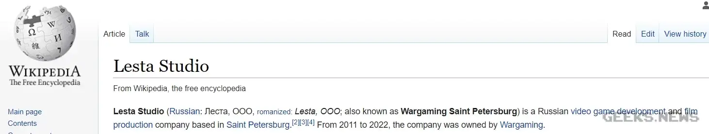 З основного - заявляється про передачу російського бізнесу компанії Lesta Studio. Заходимо в Вікіпедію: