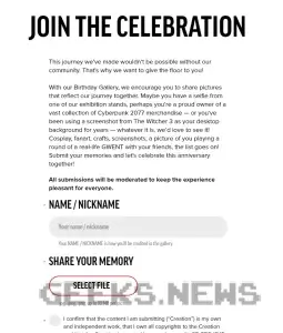 Крім цього розробники пропонують користувачам завантажити свої скріншоти з ігор CDPR та вказати свій нік, щоб стати частиною історії.
