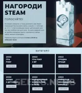Крім того триває голосування в різних категоріях, за підсумками якого Steam оголосить переможців 2022 року.