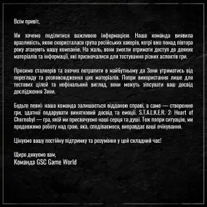 Варто також зазначити, що розробники GSC Game World потроху розчаровуються у своєму рішенні до останнього підтримувати контакт з російськомовною аудиторією. Після останнього витоку вони нарешті повністю прибрали російськомовний чат з Discord сервера. Проте адміністратори залишились, а також з гри не було прибрано російських субтитрів. Скільки ще витоків та "палок в колеса" від русні потрібно, щоб розробники спалили всі мости - невідомо. Натомість україномовна аудиторія їх щиро підтримує та терпить такі неприємні моменти, адже розуміє, що на кону успіх однієї з наймасштабніших франшиз українського геймдеву. Надіємось, що цього терпіння вистачить до релізу, а розробники швидше усвідомлюватимуть власні помилки.