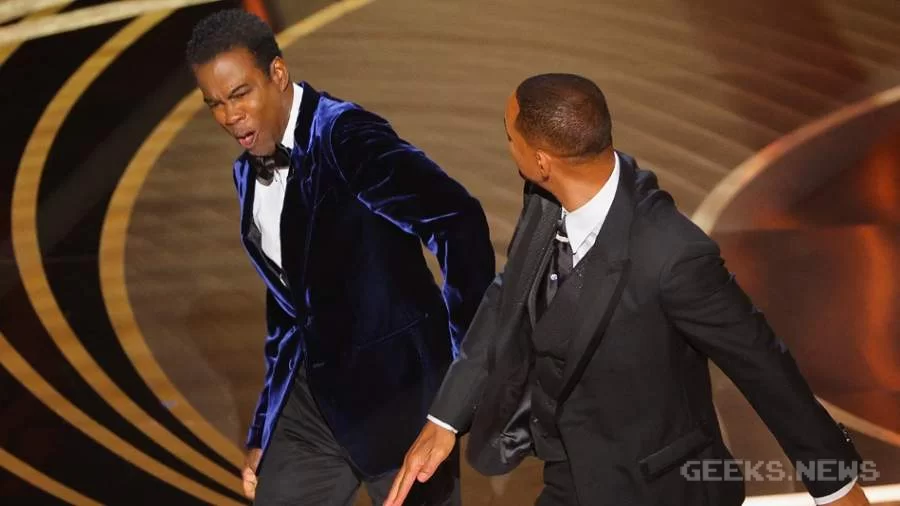 Жарт Рока не розсмішив Сміта, він підвівся з місця і попрямував на сцену. Рок продовжував усміхатися і щось примовляти, але Сміт стрімко наблизився і дав жартівнику ляпас. Після чого повернувся на місце у залі. Поки актор йшов зі сцени, ведучий церемонії щось крикнув йому слідом, але звук на мить вимкнули, і слова Рока чули лише гості заходу.