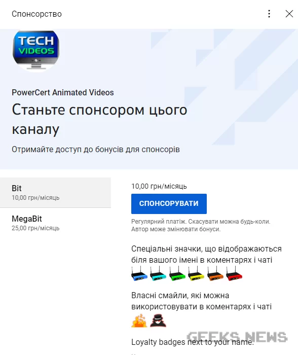 Загалом, функція спонсорства далеко не нова, і доступна всьому світу вже досить давно, та в Україні донедавна нею можна було скористатися тільки за допомогою VPN. Тепер же кожен українець може підтримати свого улюбленого відеомейкера, не покидаючи Youtube.
