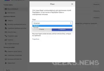 Щоби перекласти магазин PlayStation на консолі варто знову ж таки перейти в «Налаштування», розділ «Користувачі й облікові записи», після чого в пункті «Обліковий запис» буде меню «Бажана мова».