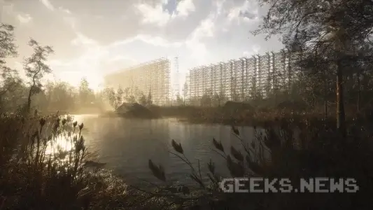 Також продемонстровано кілька красивих локацій. Напевне, найбільше глядачам запам’ятається легендарна РЛС «Дуга», яка просто заворожує, хоча й не зовсім відповідає своєму реальному прототипу, який не є оточеним водою, як у трейлері. Ну і звісно ж, у S.T.A.L.K.E.R.і не можна було обійтися без лабораторій.