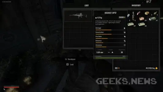 Окрім основного інтерфейсу на секунду промайнув й інвентар. З кадру нижче можна зробити висновок, що система менеджменту луту залишиться приблизно такою ж, як і в попередніх іграх. На жаль, меню спорядження гравця нам не продемонстрували, втім, зважаючи, що гра досі знаходиться на активній стадії розробки, воно й не дивно.