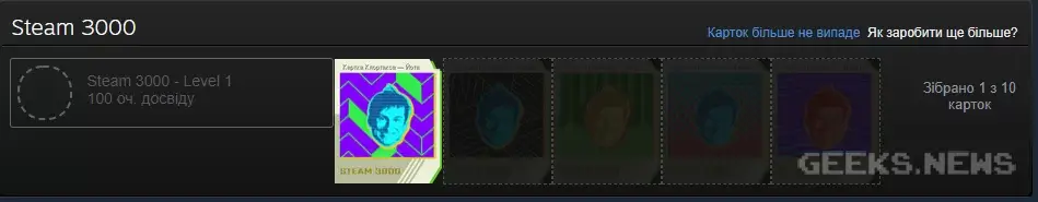 Зібравши усі 10 карток можна скрафтити значок Steam 3000 першого рівня.