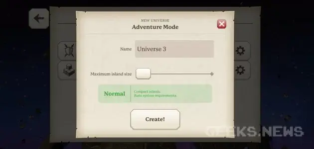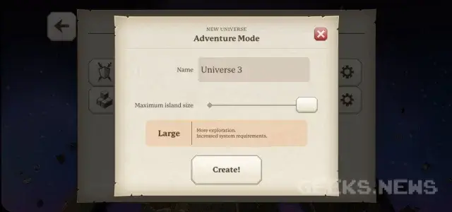 Також присутня можливість назви свого створеного світу.