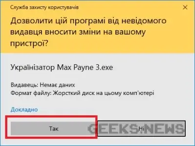 Дозволяємо програмі вносити зміни на вашому пристрої (йому необхідно замінити файли локалізації гри) натиснувши ТАК.