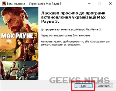Опісля відкриється вікно інсталятора, у якому натискаємо Далі.