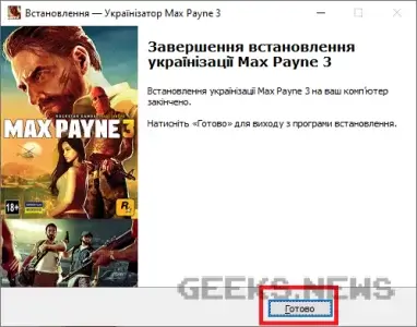 Далі українізатор зробить все за вас. Після завершення потрібно натиснути на кнопку Готово, та насолоджуватись грою.