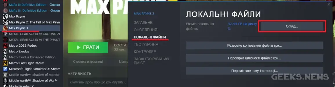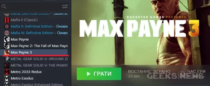 Для цього перейдіть у бібліотеку Steam та знайдіть там Max Payne 3.