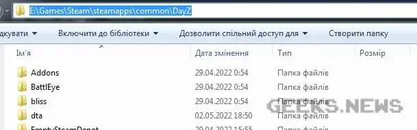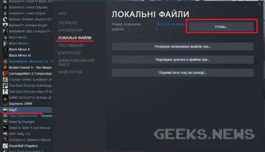 У випадку, якщо гра встановлена в іншому місці і ви не знаєте шляху, варто перейти у Steam та знайти DayZ у вашій бібліотеці.