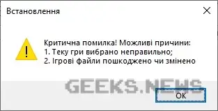 Якщо ж під час встановлення виникла помилка, найчастіше допомагає перевірка цілісності файлів гри.