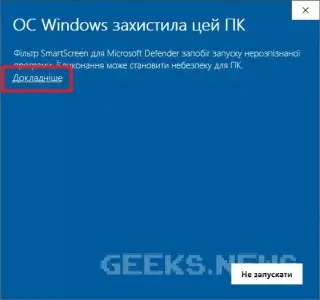 Windows також попереджає нас про те, що видавець програми йому не відомий, і потрібно натиснути Докладніше.