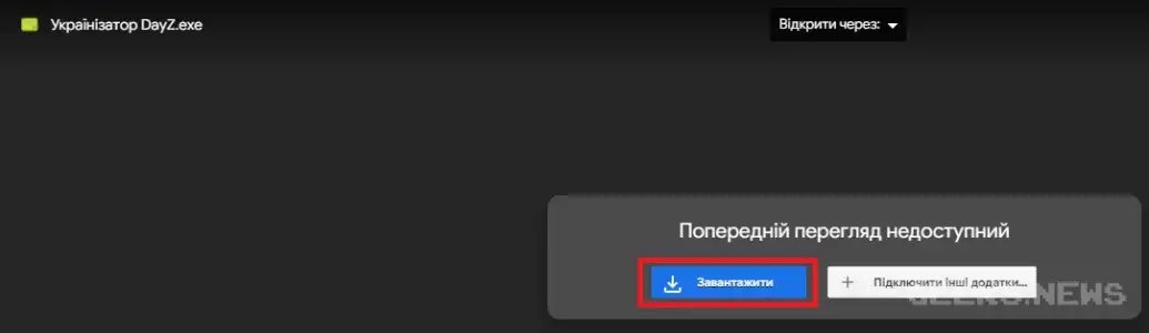 Після цього завантажується файл "Українізатор DayZ.exe", який ми відкриваємо подвійним кликом миші.