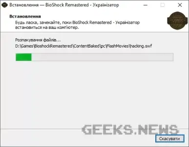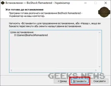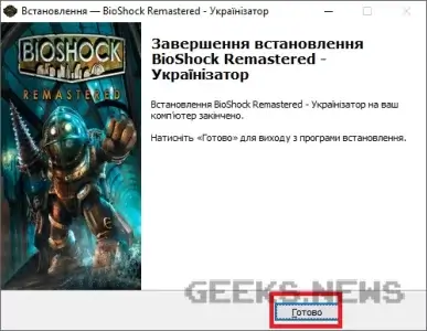 Після встановлення українізатор відзвітує про успішну українізацію вашого BioShock Remastered та попросить натиснути кнопку Готово.