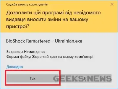 Оскільки, програма повинна замінити файли локалізації гри, дозволяємо їй внести зміни на комп'ютері натиснувши Так.![]()