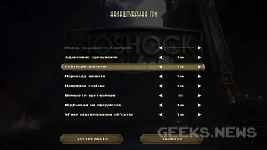 ВАЖЛИВО: По замовчуванню у грі вимкнені субтитри. Їх потрібно увімкнути в налаштуваннях.