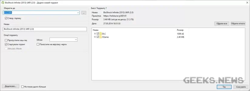 Українізатор завантажуємо за посиланням на Толоку через торент.