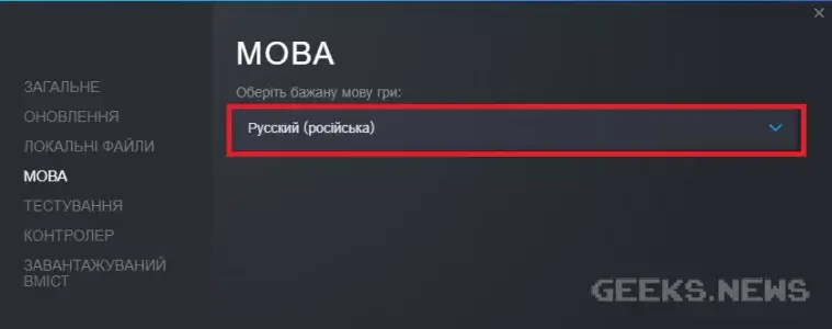 В Epic Games Store все трішки гірше. Мова гри напряму прив'язана до мови додатку Epic Games. Тому в налаштування EGS потрібно змінити мову на російську (на жаль). Для цього відкриваємо Налаштування EGS та в пункті Laтguage вибираємо російську. Після цього гра запуститься з українською локалізацією.