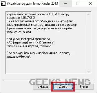 Після завершення встановлення, закрийте українізатор, та насолоджуйтесь грою.