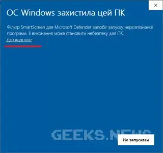 Відкриваємо потрібний, і отримуємо сповіщення Windows, про те, що файл від невідомого видавця. Тиснемо кнопку Докладніше.