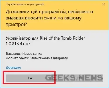 Дозволяємо інсталятору внести зміни в файли локалізації гри. Тиснемо Так.