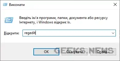 Для цього потрібно натиснути комбінацію клавіш Windows + R та відкрити реєстр за допомогою команди "Regedit".