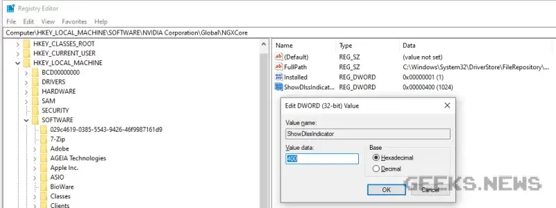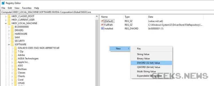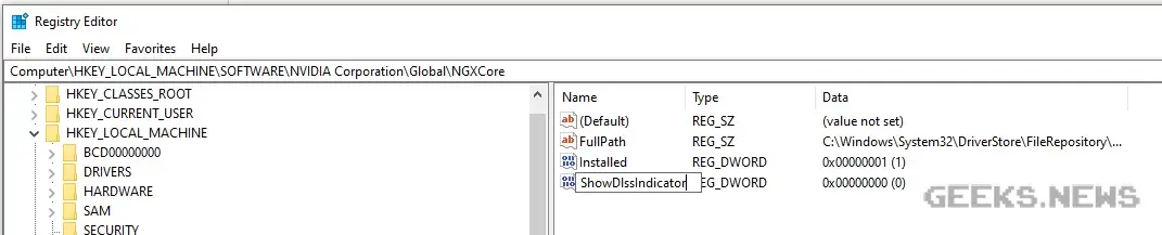 HKEY_LOCAL_MACHINE\SOFTWARE\NVIDIA Corporation\Global\NGXCore