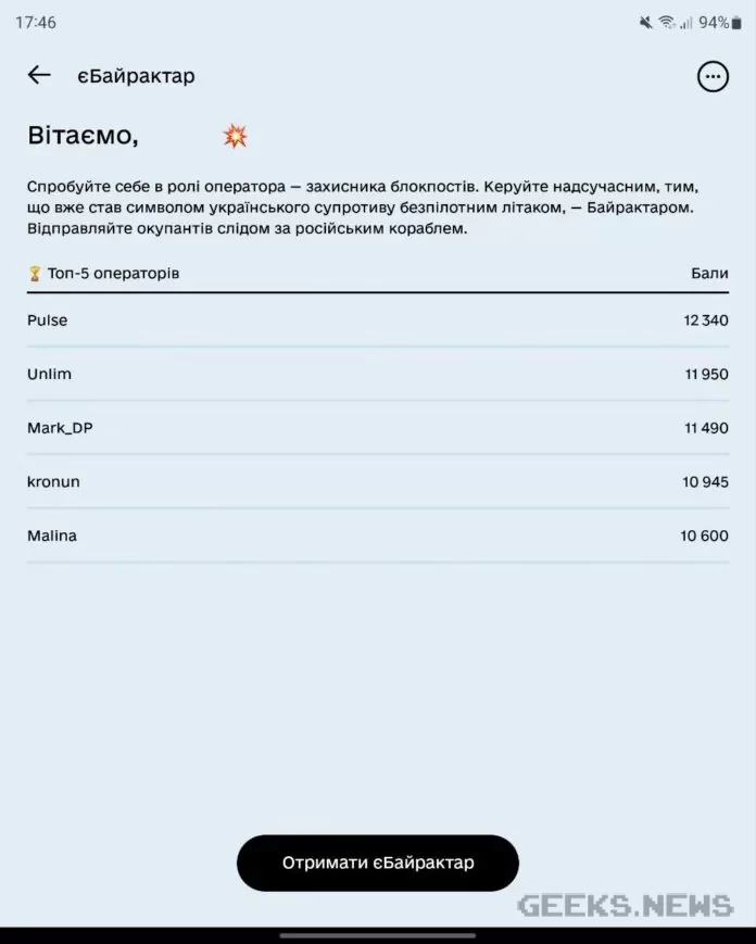 Для того, щоби скористатися можливістю відправити ворогів вслід за російським військовим кораблем за допомогою «Байрактару», необхідно оновити додаток до найновішої версії, і обрати «єБайрактар» у розділі «Послуги». Після цього необхідно вказати свій нікнейм для таблиці рекордів, і можна починати знищувати окупантів.