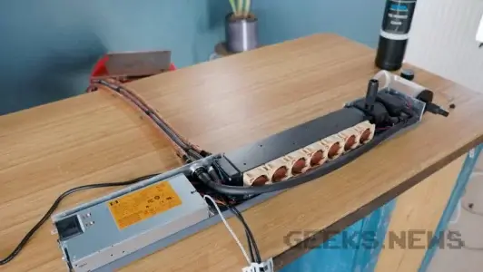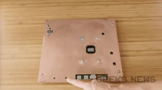 Для цього блогер самотужки створив кастомне мідне охолодження з водяним контуром всередині, спаявши 3 заздалегідь підготовані мідні пластини у яких він вирізав канали для циркуляції води. На відміну від звичайних систем водяного охолодження, вода циркулюватиме в мідній пластині, а не в гумових шлангах, а канали будуть дуже тонкими. Тим не менш цього повинно вистачити для охолодження 180W TDP основного процесора.