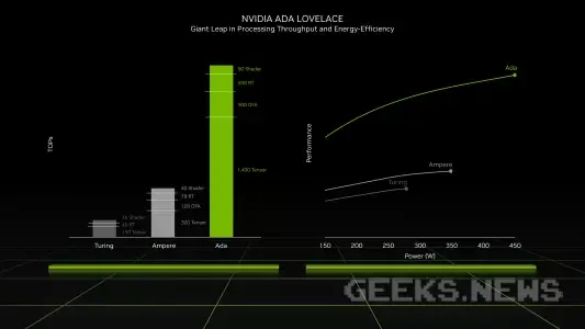 Самим відеокартам було присвячено зовсім мало часу, але великий акцент ставився на нове покоління технології DLSS 3.0. Даний алгоритм дозволяє збільшувати число кадрів в секунду до чотирьох разів, порівняно з відеокартами RTX 30, які працюють з DLSS 3.0.