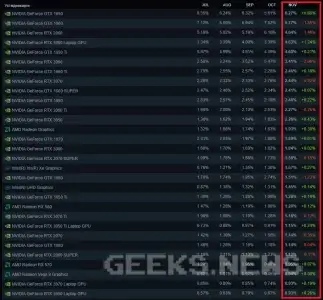 Проте, частка 10-го покоління Nvidia починає скорочуватися, адже дані відеокарти пережили декілька майнінг-бумів, а ті, які були в ПК звичайних геймерів та рідко обслуговувались теж починають виходити з ладу. На заміну їм приходить більш сучасне 16-те покоління та RTX відеокарти, які стають доступнішими для покупки.
